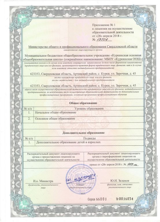 Место осуществления образовательной деятельности: Свердловская обл., Артинский район, с. Курки, ул. Заречная, 45